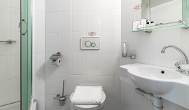 Стандартная каюта на нижней палубе / категория А2н Двухместная каюта увеличенной площади со всеми удобствами, расположенная на нижней палубе. Номера кают: 104, 106, 114, 118. В каюте: две односпальные кровати, ванная комната (душ, раковина, туалет) шкаф, стол, два стула, зеркало, кондиционер, холодильник, радио, телевизор с кабельным и спутниковым вещанием, фен, розетки 220 V, щетка для одежды, плед для каждого туриста, питьевая вода, иллюминаторы. Палубы: нижняя. |