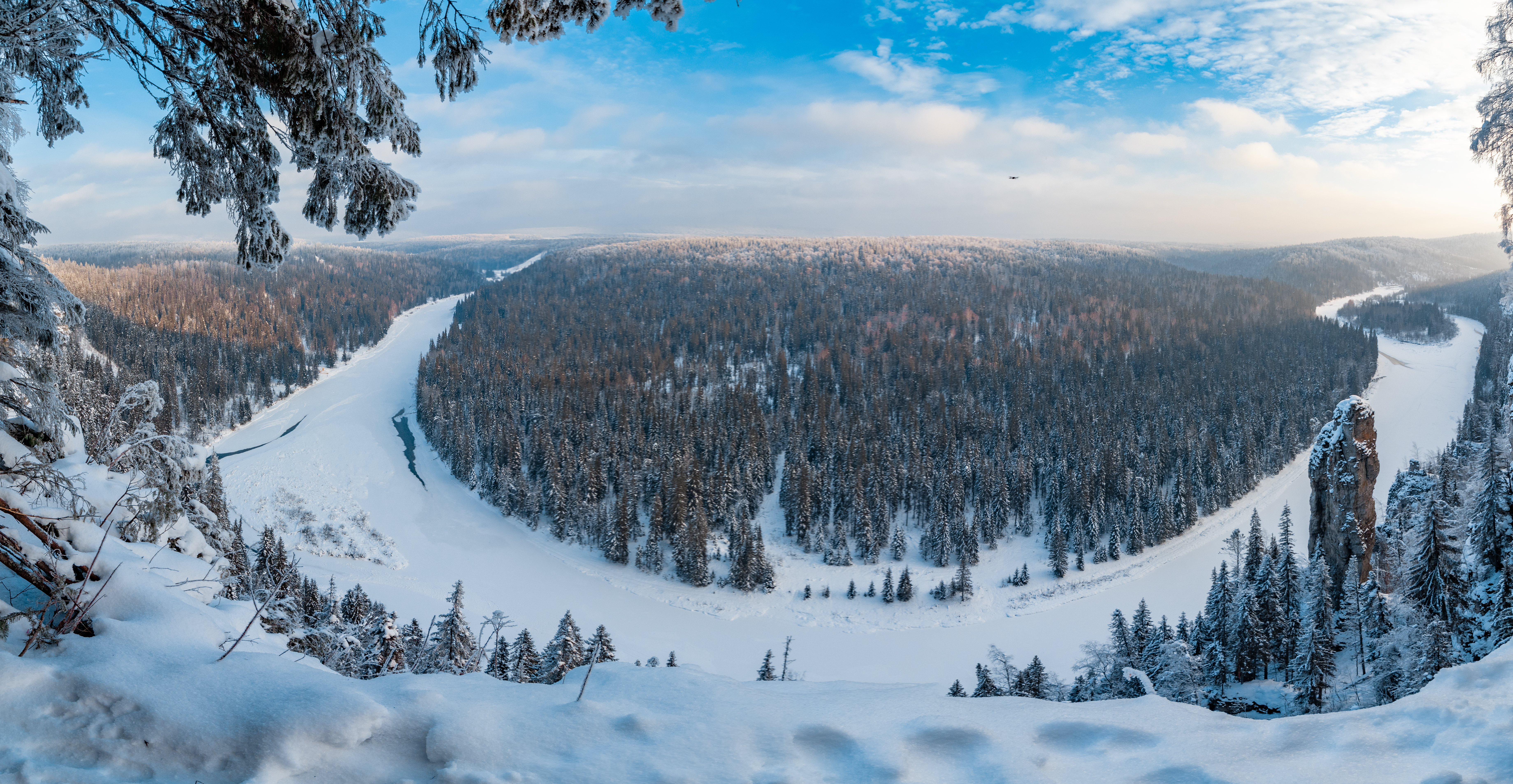 Столбы являются самым известным скалистым обнажением на реке Усьва. От скальной стены отступает несколько выступов в виде высоких вертикальных столбов. Главный останец Усьвинских Столбов – «Чёртов Палец» вытянулся в высоту на 70 метров! Непременно побывайте на вершине этих скал. С обзорной площадки открывается прекрасный вид на изгибы реки Усьва. Впечатлений хватит надолго!
