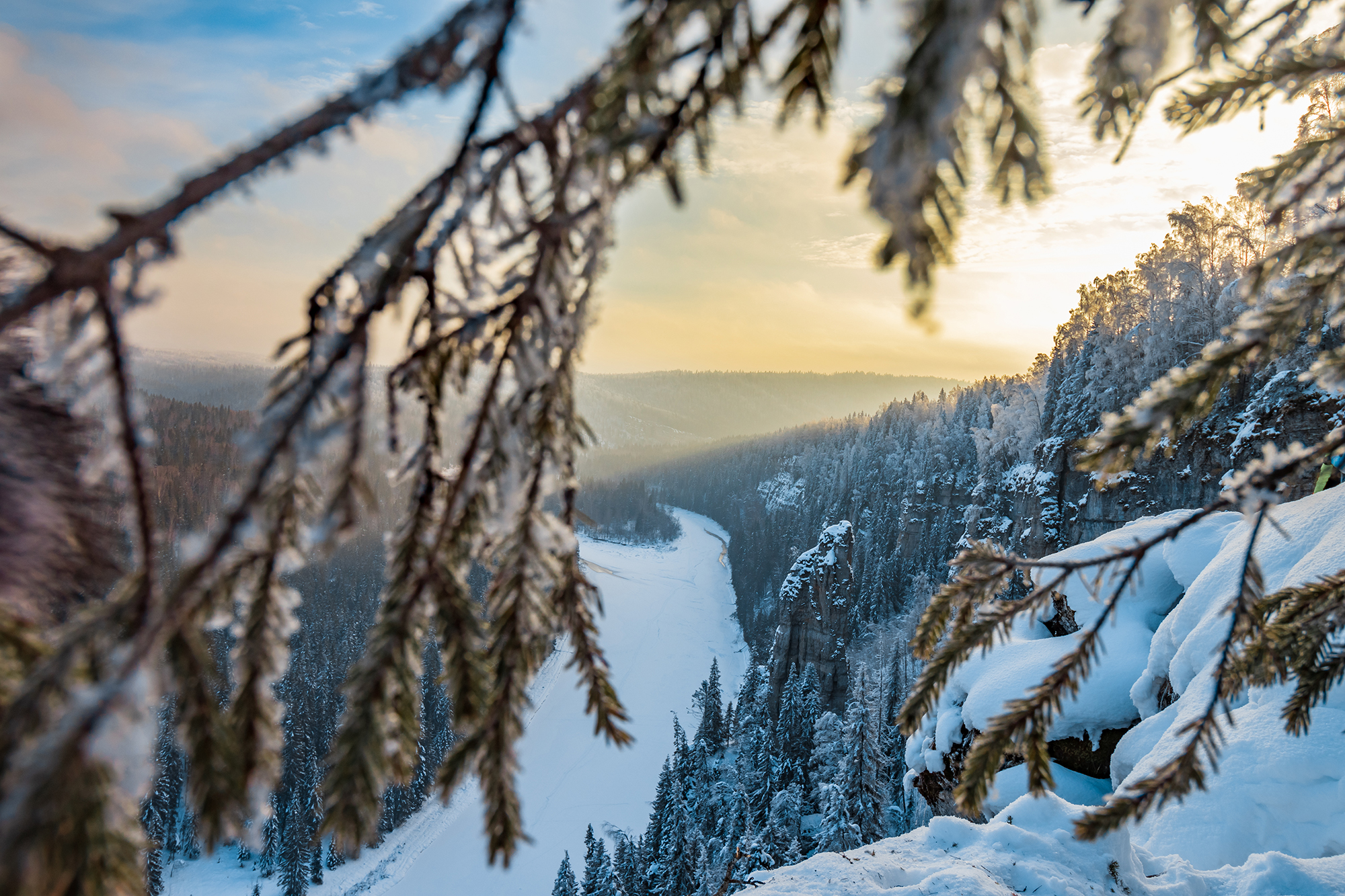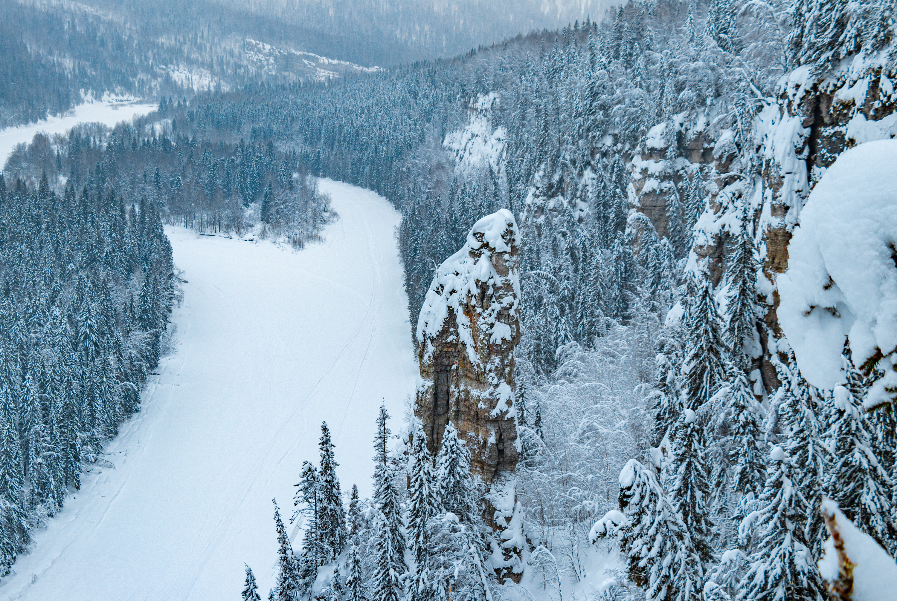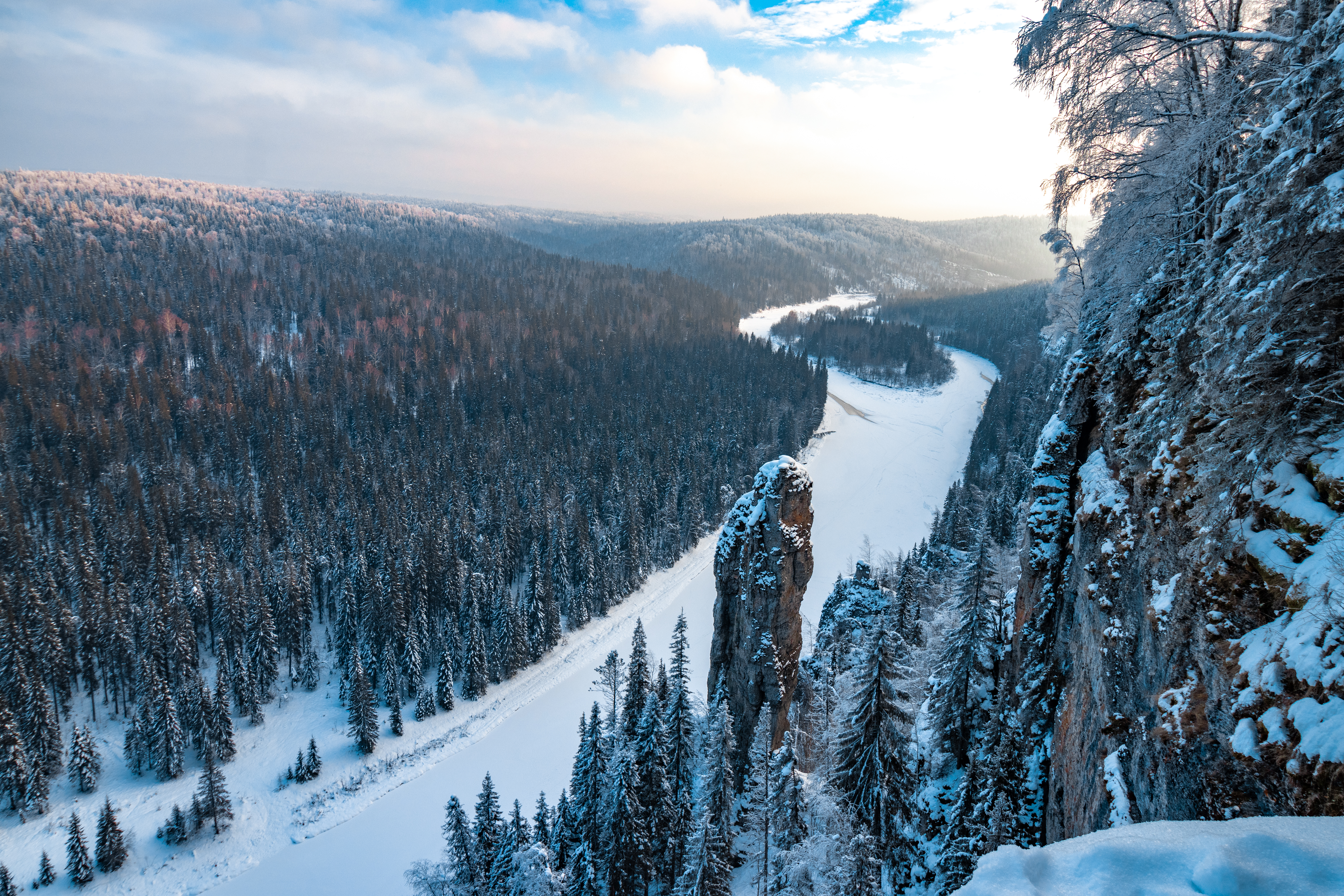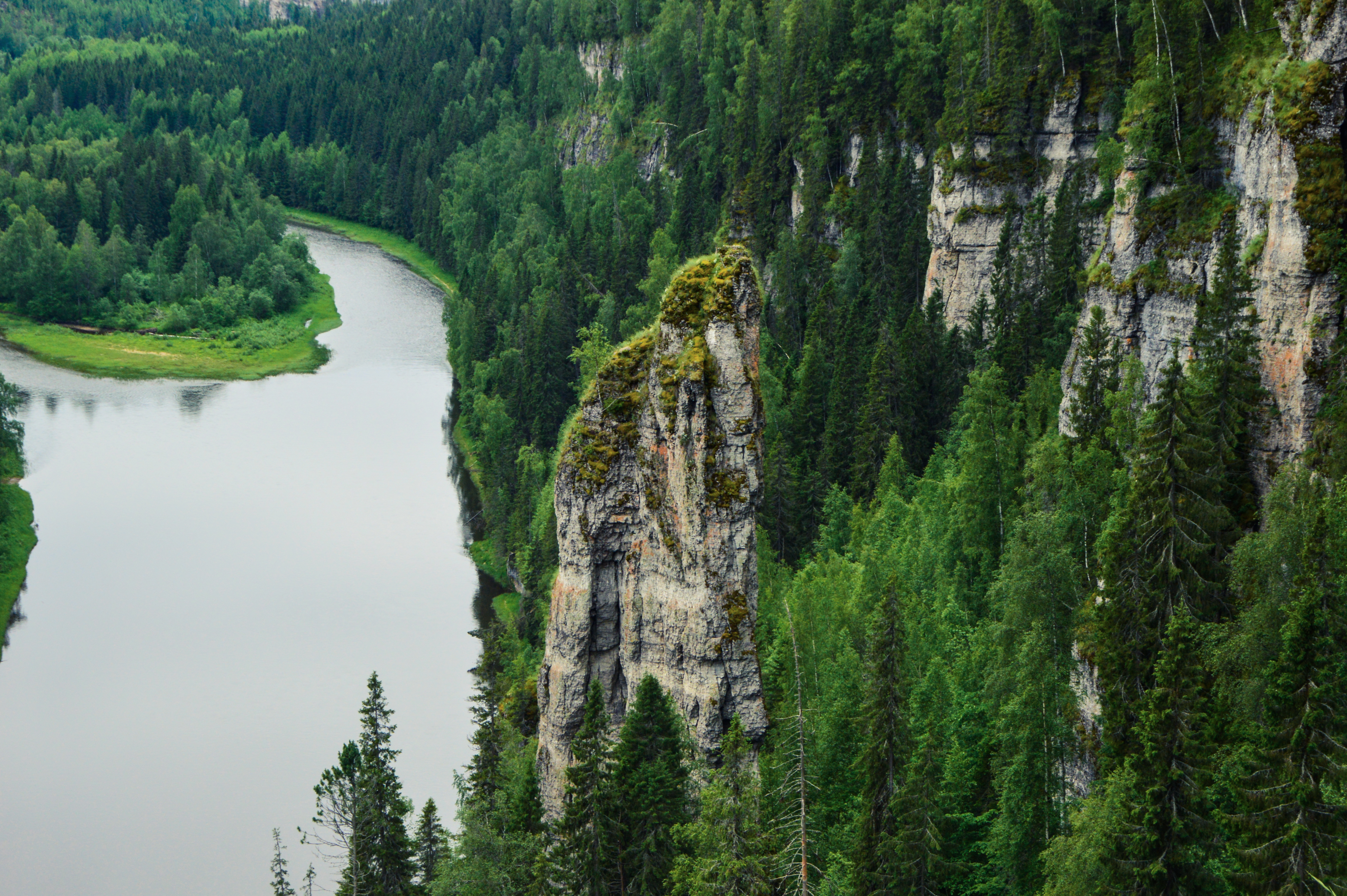 Скалы Усьвинские столбы являются визитной карточной Пермского края. Высокая (до 120 метров в высоту) скальная стена вытянулась вдоль реки на несколько километров.