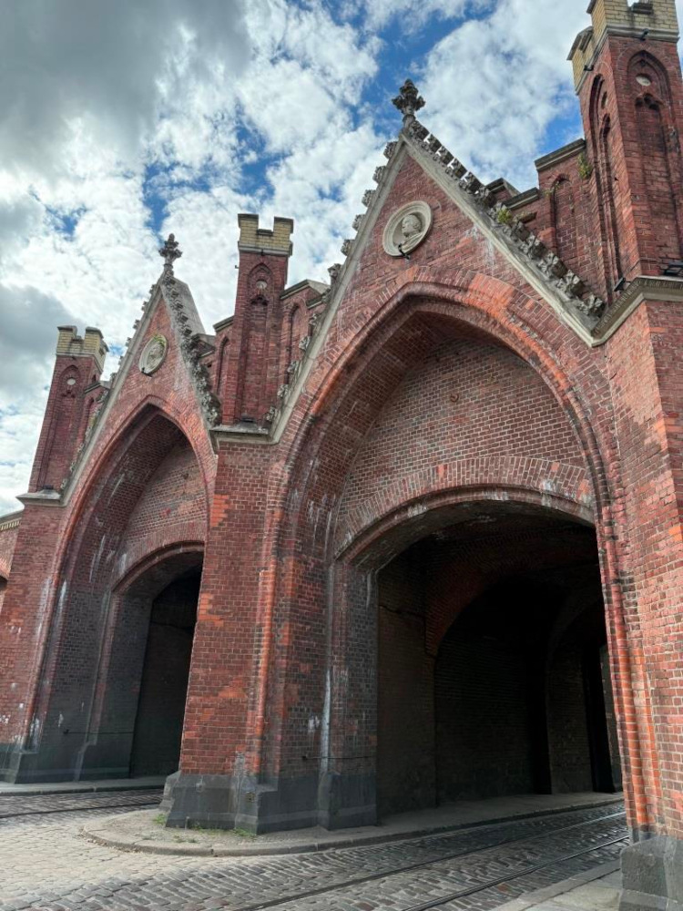 - Фридландские ворота (только проездом, осмотр из окна автобуса) - стали последними воротами Кёнигсберга (то есть были построены последними). Фридландские ворота входили в состав оборонительных сооружений Кёнигсберга XIX в. Через них проходила дорога, ведущая к городу Фридланд (ныне г. Правдинск). До Первой мировой войны через ворота можно было попасть в город или выехать из него, а с 1920 г. они стали входными воротами в парк «Южный». В настоящее время в воротах располагается Музей истории города «Фридландские ворота» с экспозициями, раскрывающими события от эпохи Тевтонского ордена (1255 г.) до первых переселенцев Калининградской области после Второй мировой войны.
